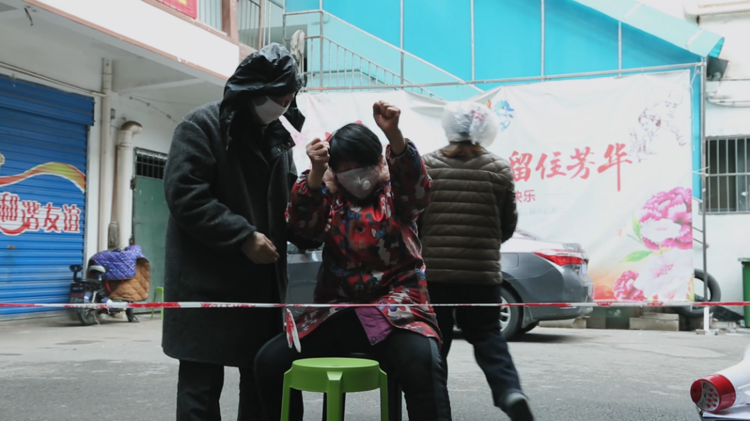 其中,我印象最深刻的段落是,那個病得已經(jīng)站不住的熊阿姨還在叮囑著社區(qū)工作者和家人:“不要怕,要堅強,要沖……”。特別是女兒要上前來攙扶,熊阿姨使勁揮手推開女兒,并嚴厲阻止老公靠近她的那個下意識反應。她擔心自己得了新冠,再傳染給家人,因此堅定地要把他們推開。我第一次看到這段素材的時候,眼淚嘩的一下就下來了。
