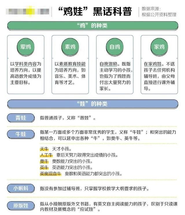 與《小舍得》相比,《陪你一起長(zhǎng)大》也是有過(guò)之而無(wú)不及,“雞娃”養(yǎng)成記從幼兒園就已經(jīng)開(kāi)始了。觀眾由此學(xué)到了很多“暗語(yǔ)”,比如學(xué)體育、藝術(shù)的雞娃方式叫“素雞”,學(xué)應(yīng)試教育課程的叫“葷雞”,成功的孩子叫“牛蛙”,天賦強(qiáng)的孩子叫“天牛”,扛不住家長(zhǎng)的打雞血的小孩叫“不耐雞”,數(shù)學(xué)好的叫“奧牛”,能看英文原著的叫“英牛”,兩者兼?zhèn)涞慕小坝W混血牛”……
