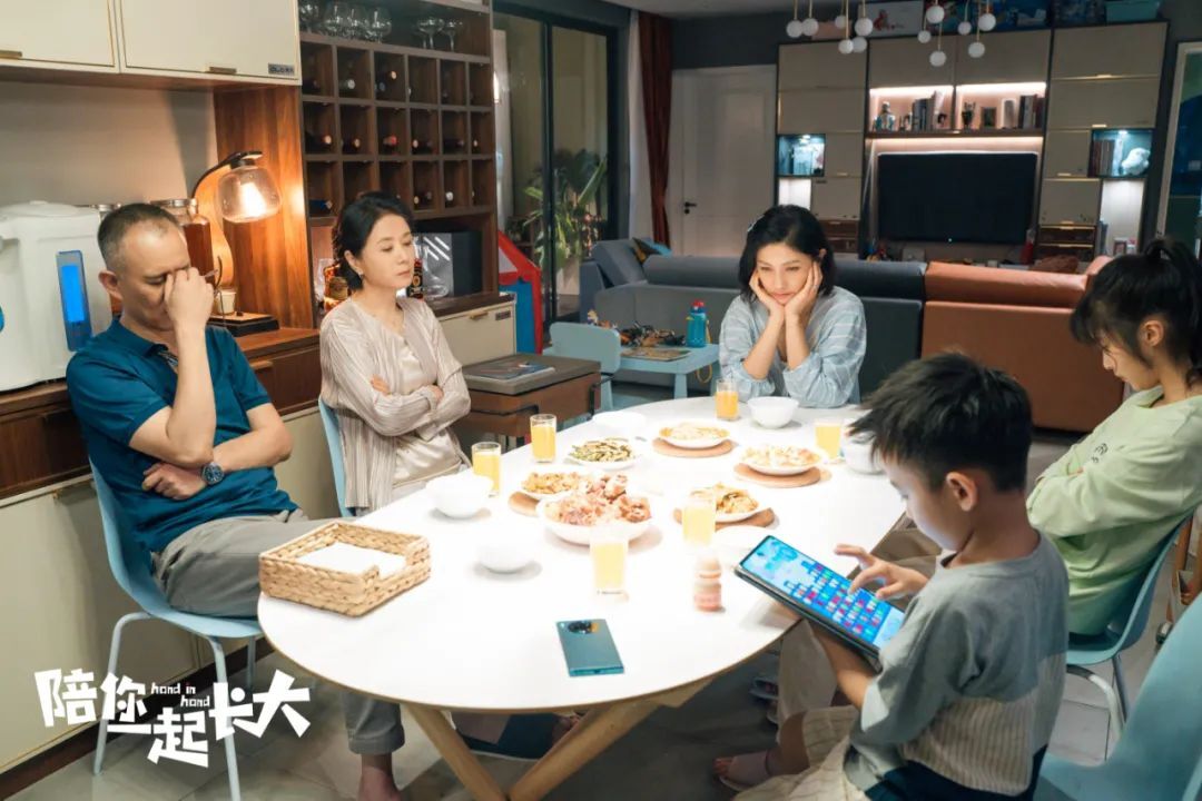 《陪你一起長(zhǎng)大》里設(shè)置了四個(gè)家庭,則涉及更多的社會(huì)面,包括二婚重組家庭、二胎家庭、全職媽媽的自我定位、職場(chǎng)性別歧視、離婚不離家、外地務(wù)工人員生存、家庭暴力、學(xué)區(qū)房和直播等熱點(diǎn)話題。四組家庭幾乎囊括了時(shí)下所有的家庭形態(tài),但雜糅到一起講故事,只能蜻蜓點(diǎn)水,隔靴撓癢,處處單薄。