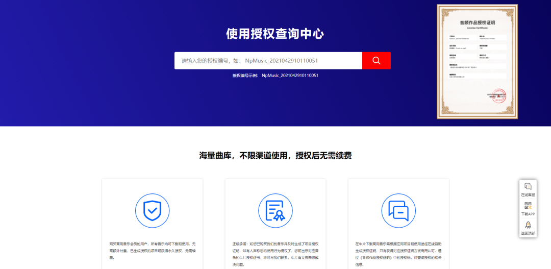 查詢音頻作品授權證明