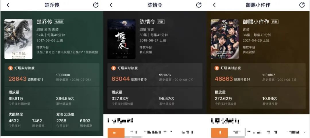 今年上半年在全網(wǎng)擁有高熱度,評分頗高的《御賜小仵作》,全部播出完畢后至今,36集的內容,播放量也才不過將近11億,這樣的播放量水平,相較于去年、前年,還是有較大差異的。“以現(xiàn)在的播放量去和去年、前年比,都沒有意義。”某制片人這樣說。