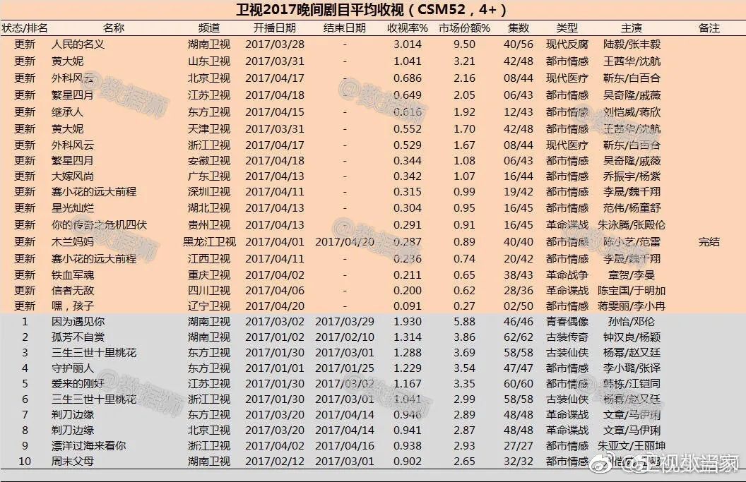 《人民的名義》2017年CSM52城平均收視率已經(jīng)達到3.014
