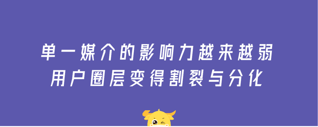 因?yàn)橐粋€(gè)不爭(zhēng)的事實(shí)擺在所有人面前:單一媒介的影響力越來越弱,用戶圈層變得割裂與分化。老少皆宜的時(shí)代已經(jīng)過去了。