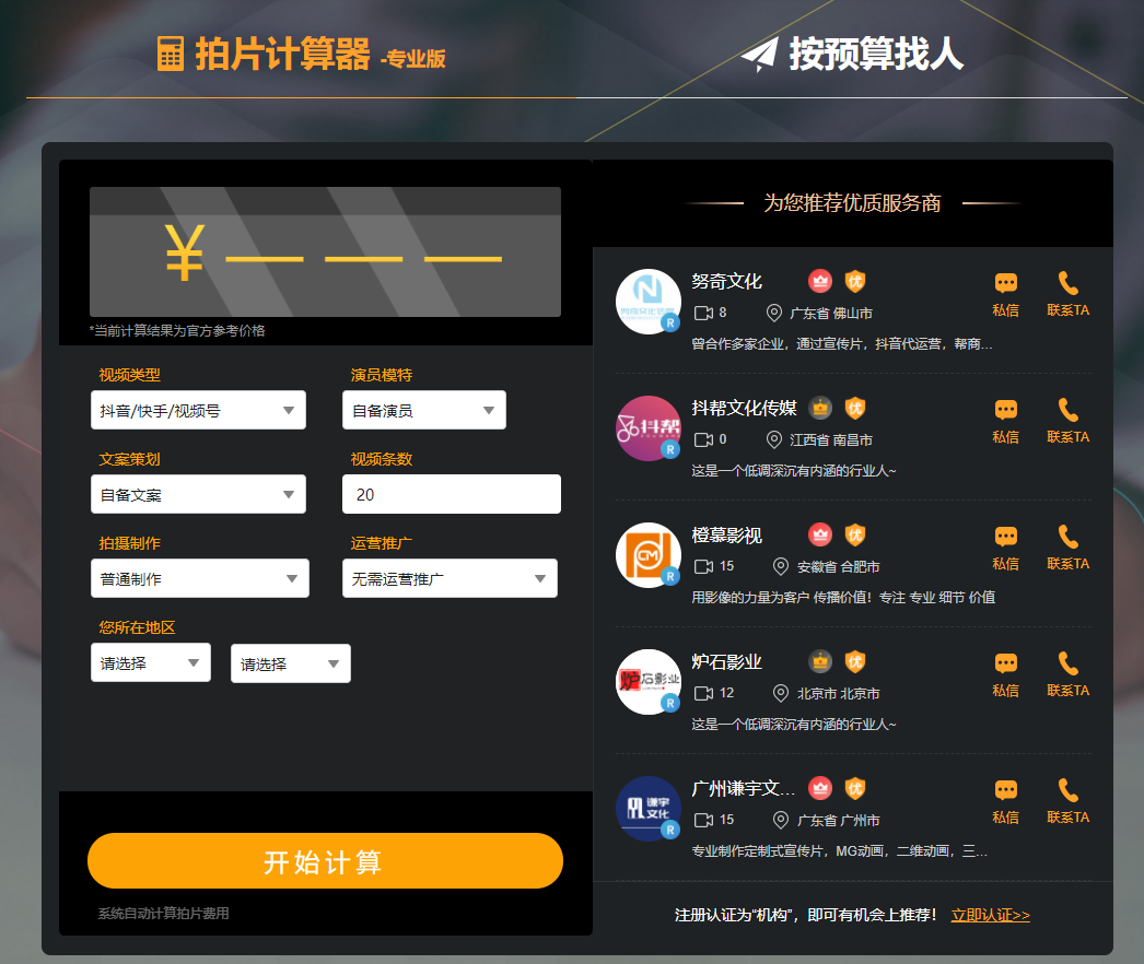如果你不太清楚做視頻的花銷具體是怎么計(jì)算的,可以試試拍片計(jì)算器——一款一直被模仿,從未被超越的發(fā)需求神器,如今已經(jīng)迭代了好幾版。