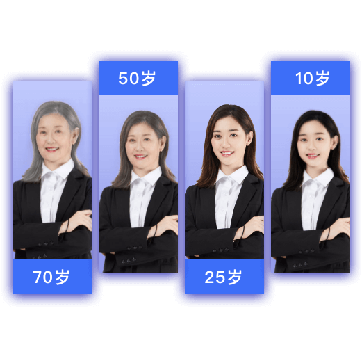 一鍵改變年齡變老、變年輕,輕松實現返老還童! 僅支持單張上傳僅支持單張圖片拖拽到頁面,支持PNG/JPEG/JPG/BMP格式,圖片小于5MB。僅需兩步人像變換一鍵實現變年齡,幫您回到10歲,展望80歲!多人變臉隨意自在支持對合影中的部分人物進行年齡變化,升級社交娛樂玩法。