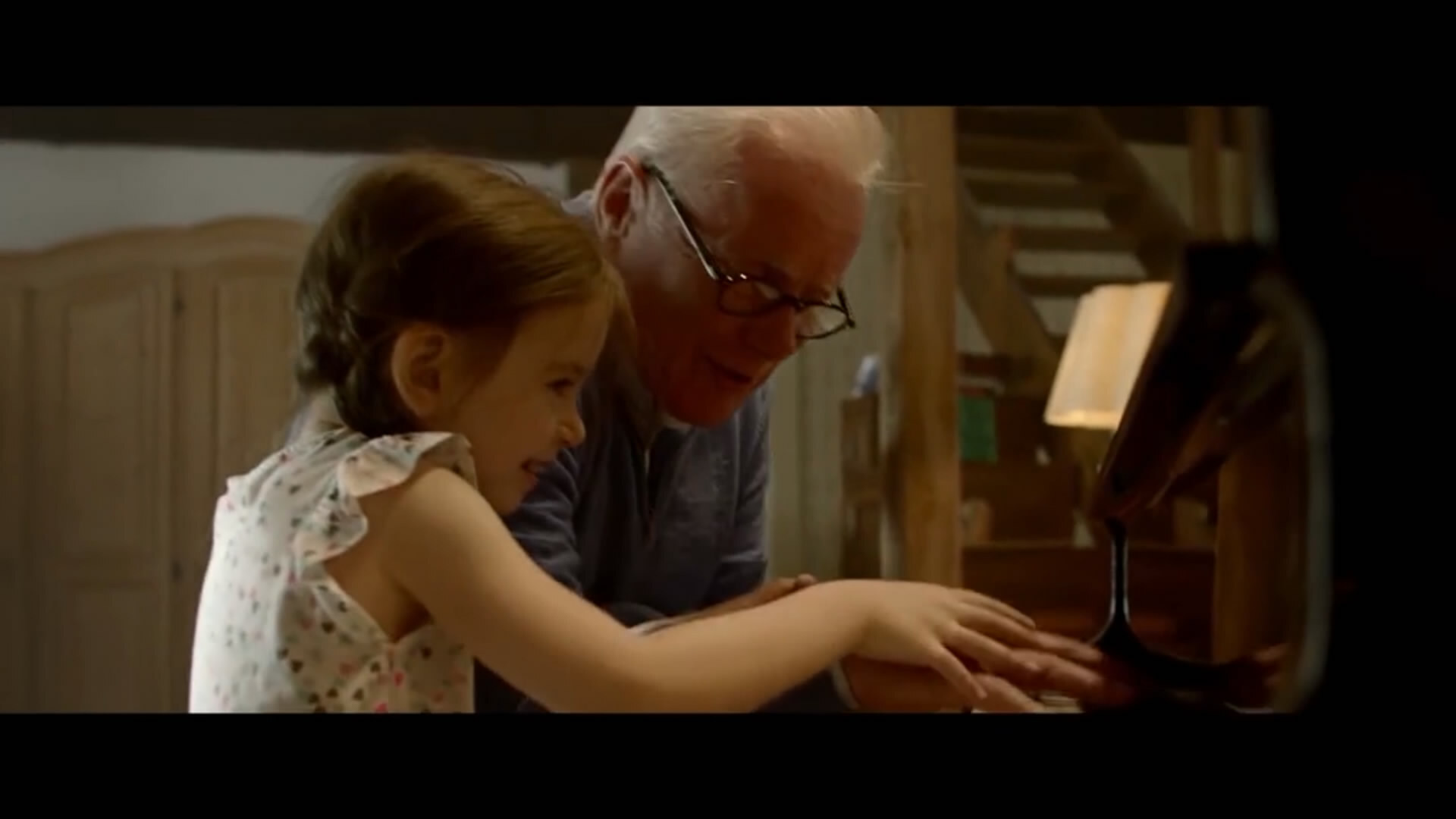 小女孩第一次和爺爺學鋼琴——小手握著爺爺的大手